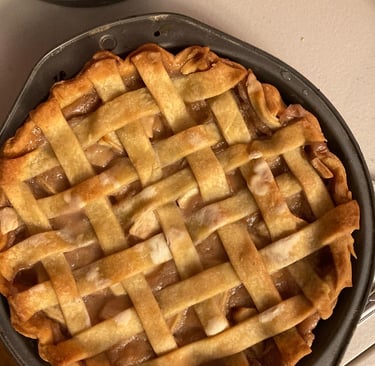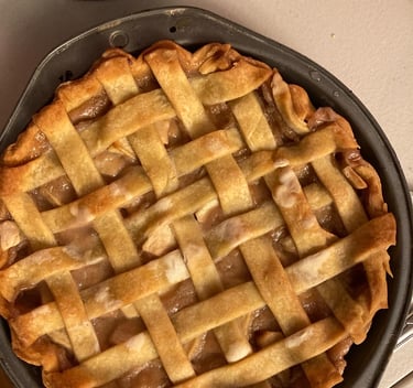 Roll out your dough and place it in the pie tin, cut off any excess to re-roll if using a lattice topping, and reduce oven to 375ºF.
