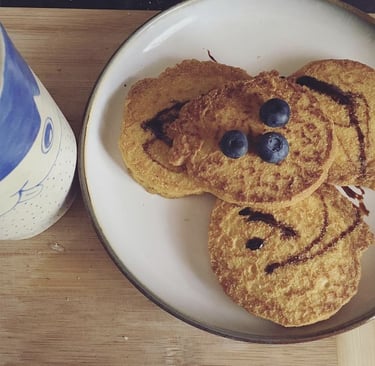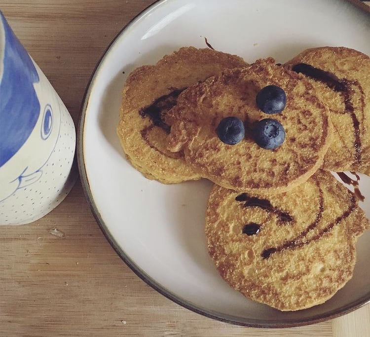 You can try making them with a 1:1 gluten-free flour if you feel the need to. I like serving these up with banana and peanut butter, but blueberries are also a great addition to add in while they're cooking.